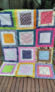 Suzannah Richardson (Vic) donated the first 13 fabulous quilts in a variety of colours and sizes. I must apologise as the photos don't always reflect how brand colourful the quilts are in reality, especially if it's cloudy day.